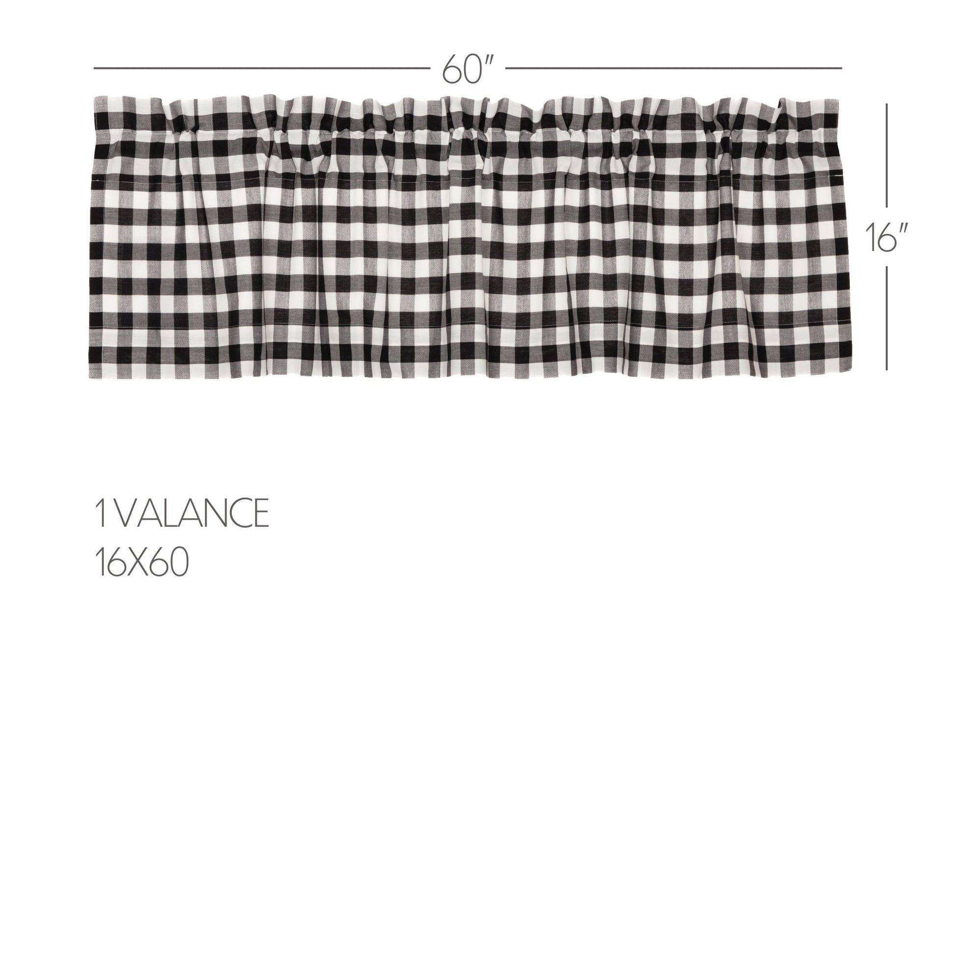 The Annie Buffalo Black Check Valance is a fresh and lighthearted piece tailored to complete the look of your casual farmhouse decor. Large-scale black and antique white buffalo checks create a relaxed country feel in your home. Place this 16x60 curtain in the kitchen or any window to enhance the style of a room. This 100% cotton valance has a white lining to keep away the sun's glare and has a rod pocket for simple hanging.