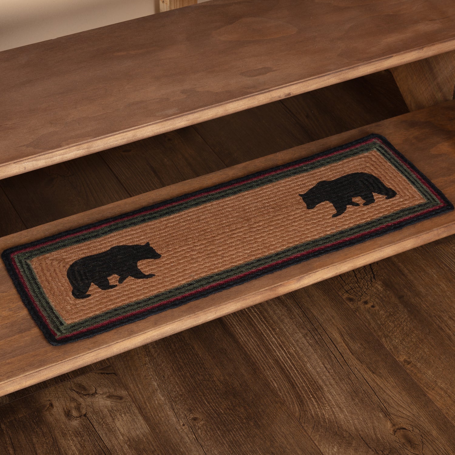 - Black Bear Accent - Alternating braids of deep black and dark tan and a large stenciling of two classic American black bears add rustic, durable style to steps.