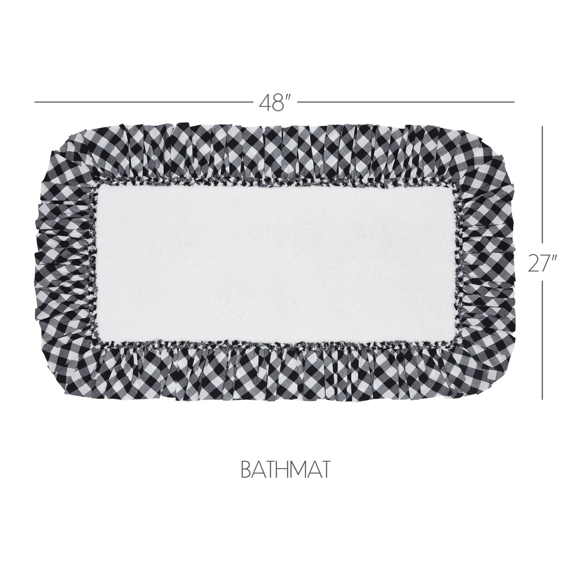 Step out of the shower and into cozy country farmhouse bliss. The Annie Buffalo Black Check Bath Mat 27x48 features a solid white core in premium, ultra absorbent cotton. It is trimmed with a ruffled buffalo plaid fabric in black and white. Backed with textured rubber to produce a quality, non-slip surface without the need for a separate rug pad. This ruffled bath mat is a great finishing piece for bathrooms or laundry rooms where you need the perfect balance of style and functionality.
