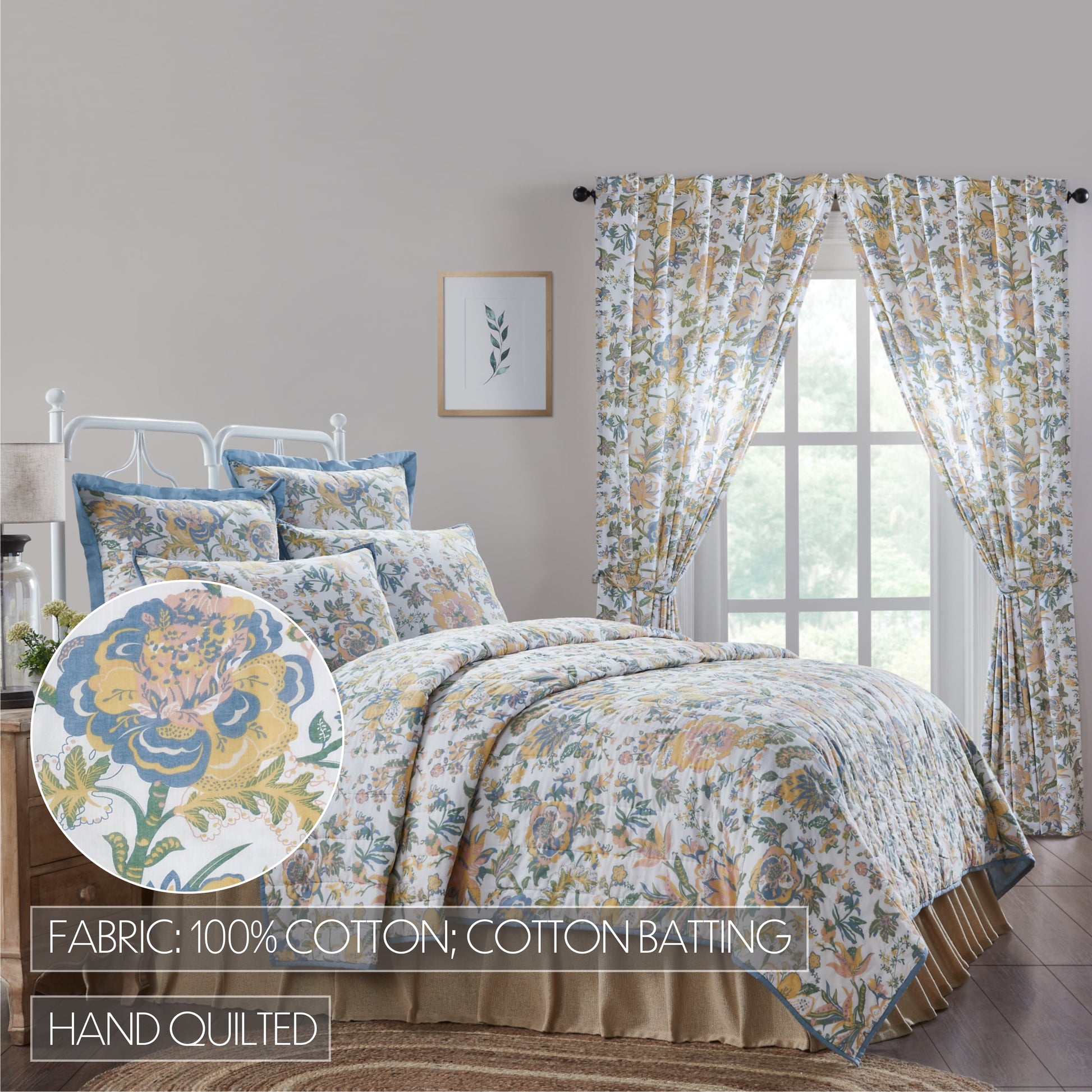 Add an elegant splash of color to your room with this vintage inspired floral quilt in antique creme, soft green and dusty blue. The Wilder Twin Quilt measures 68 by 86 inches and features hand stitching for a superior finish built to last. Constructed from 100 percent cotton, this soft country style quilt is machine washable and iron safe. Coordinates with the Wilder Collection by VHC for vintage farmhouse style and the quality you can expect from over 20 years of happy customers.